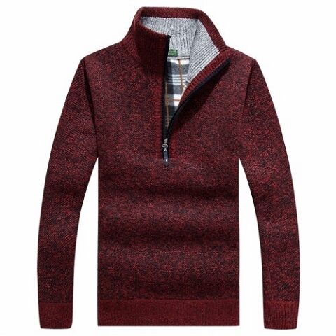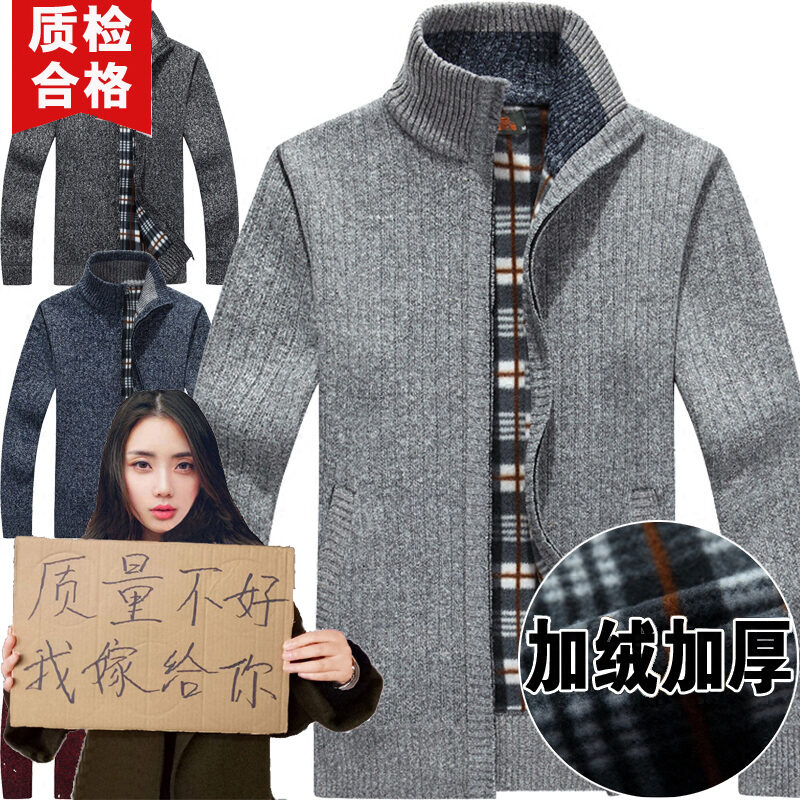 Autumn and Winter Men's Casual Fleece-Lined Thickened Cardigan Sweater Stand Collar Youth Turtleneck Sweater Men's Sweater Coat Men's