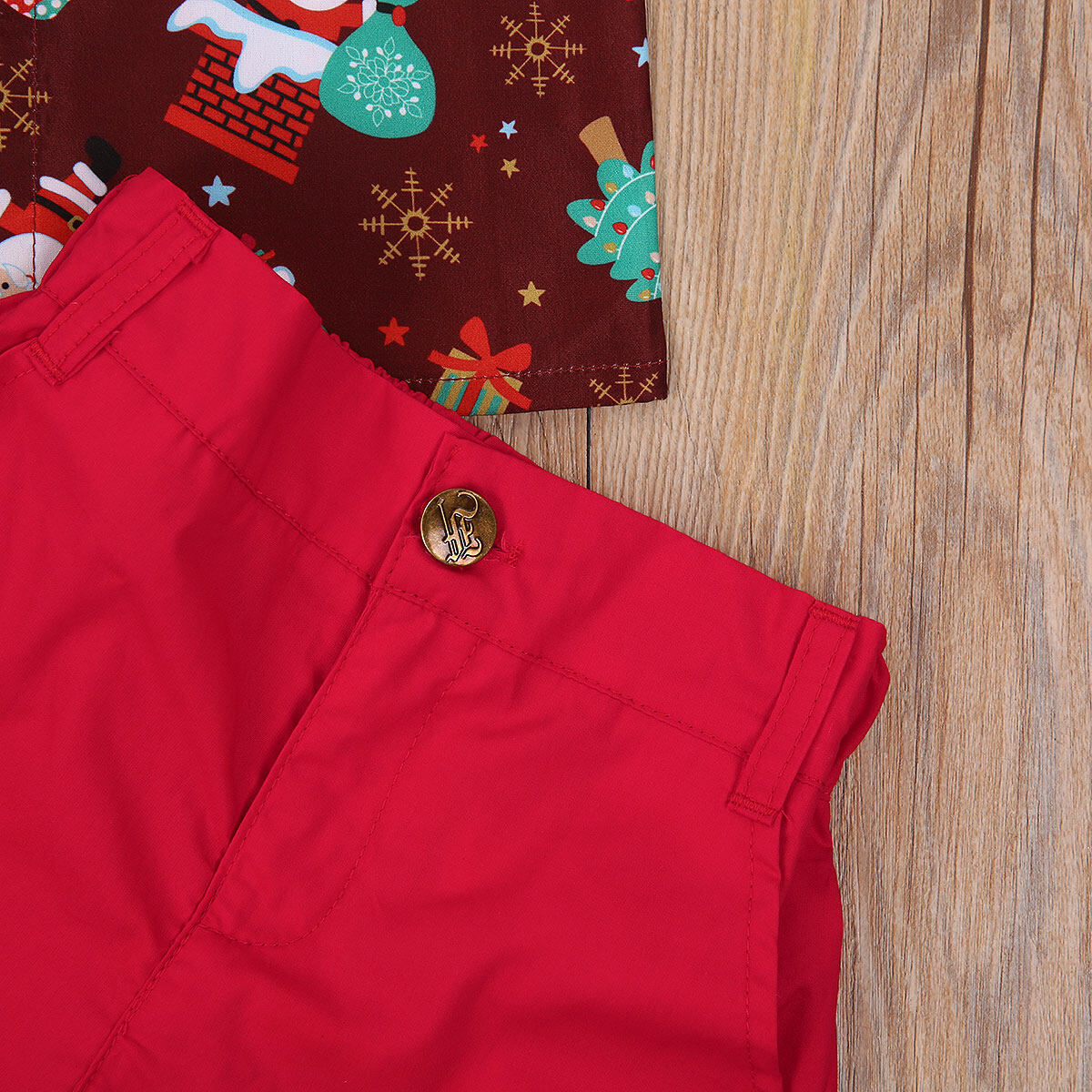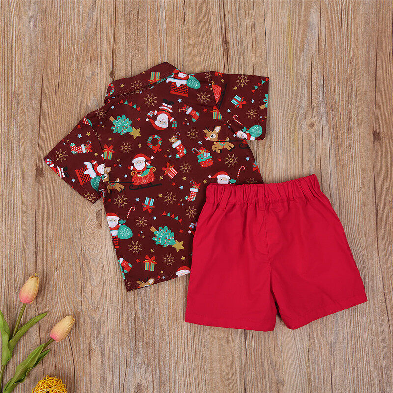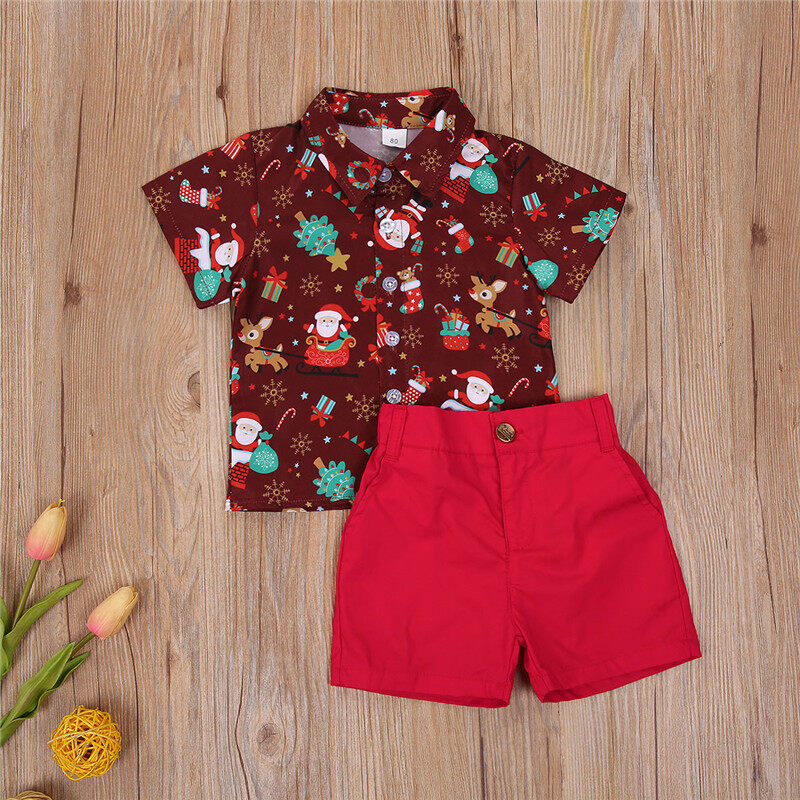 Christmas Children Kids Boy 2Pcs Suit Top+ Short Pants Polo Neck Clothes Set Oufit