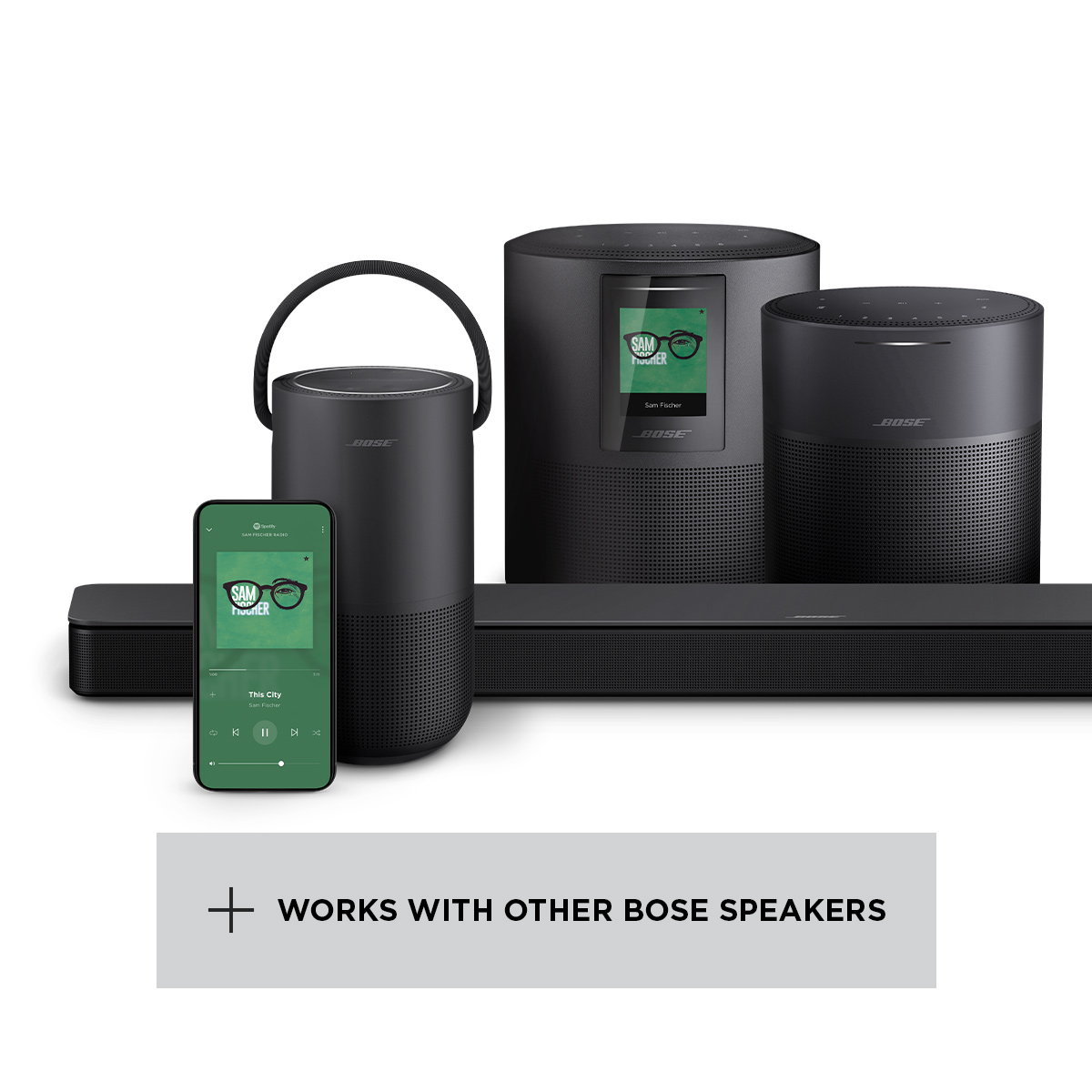Bose SimpleSync™ technology allows you to pair your Bose Smart Soundbar 300 with compatible Bose products. Want to watch TV but not disturb anyone else? Pair your soundbar with select Bose headphones for a personal TV listening experience. Want to listen to the same music in different rooms at the same time? Pair your soundbar with a select Bose Bluetooth speaker to add more sound around the house.