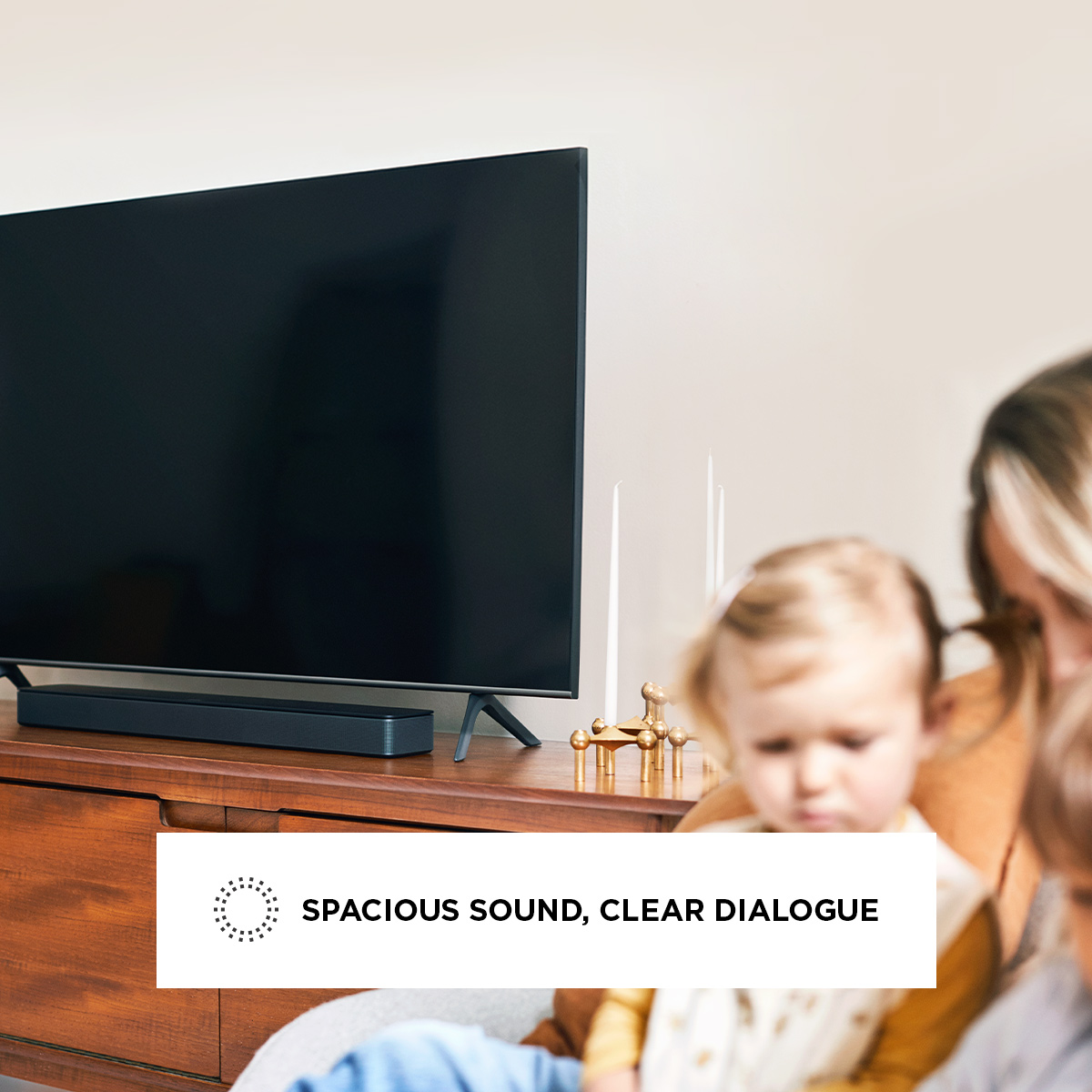 The Bose Smart Soundbar 300 delivers spacious sound, clear dialogue, and rich bass for your movies, music, and games. The acoustic architecture is specially designed to keep this soundbar sleek and elegant. With built-in voice assistants and exclusive Bose Voice4Video™ technology, what typically takes several steps can now be done with one simple voice command. It’s fast, simple, and easy enough for everyone to enjoy.