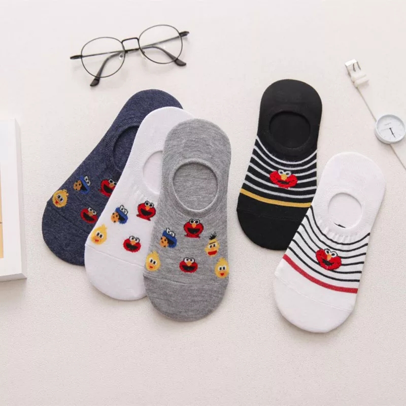 (SG Seller) 5 Pairs Women Socks Cute Sesame Street Anime Socks cotton Cartoon Pattern Summer invisible Socks women Casual Lady Happy Socks for girls