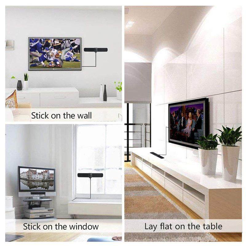 3.Extremely lightweight paper thin design, you can hide it behind the TV, lay flaton table; stick it high on window(stand moisture weather or exposed to sunshine). It'll pull in hundreds of crystal clear digital & HD shows! It can be safelpainted to match any home decorations without affecting reception or signal loss.
