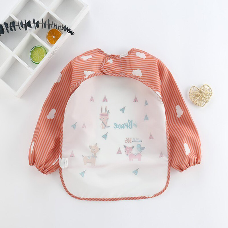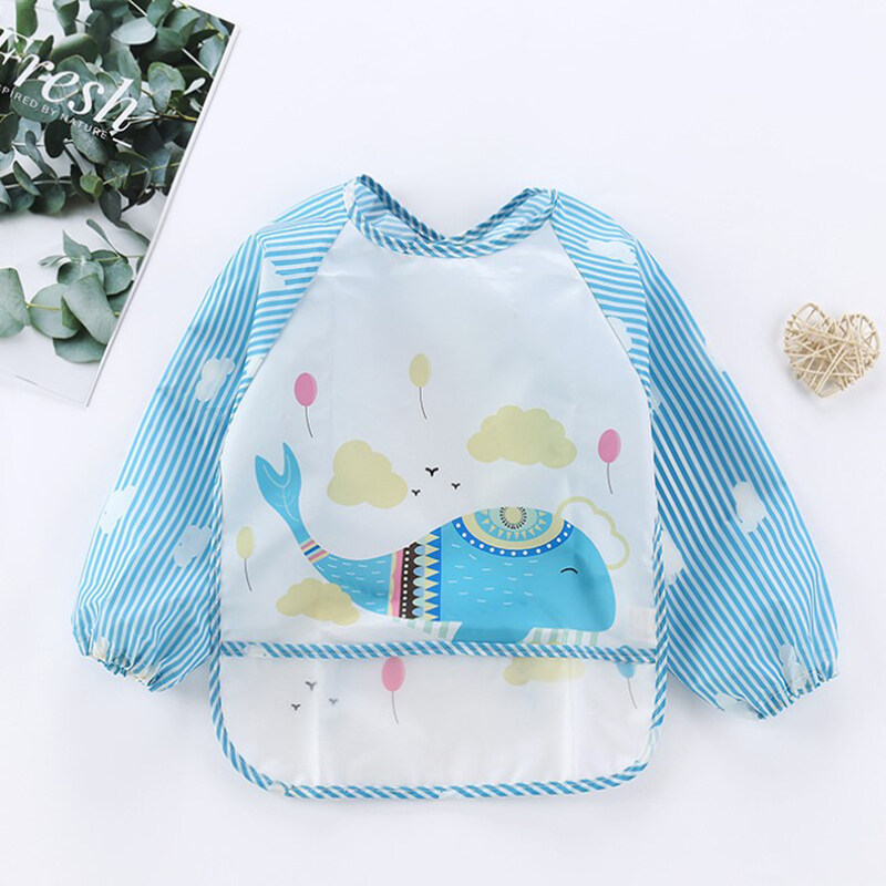 quyunxia New Baby Kids Toddler Long Sleeve Waterproof Art Smock Feeding Bib Apron Pocket