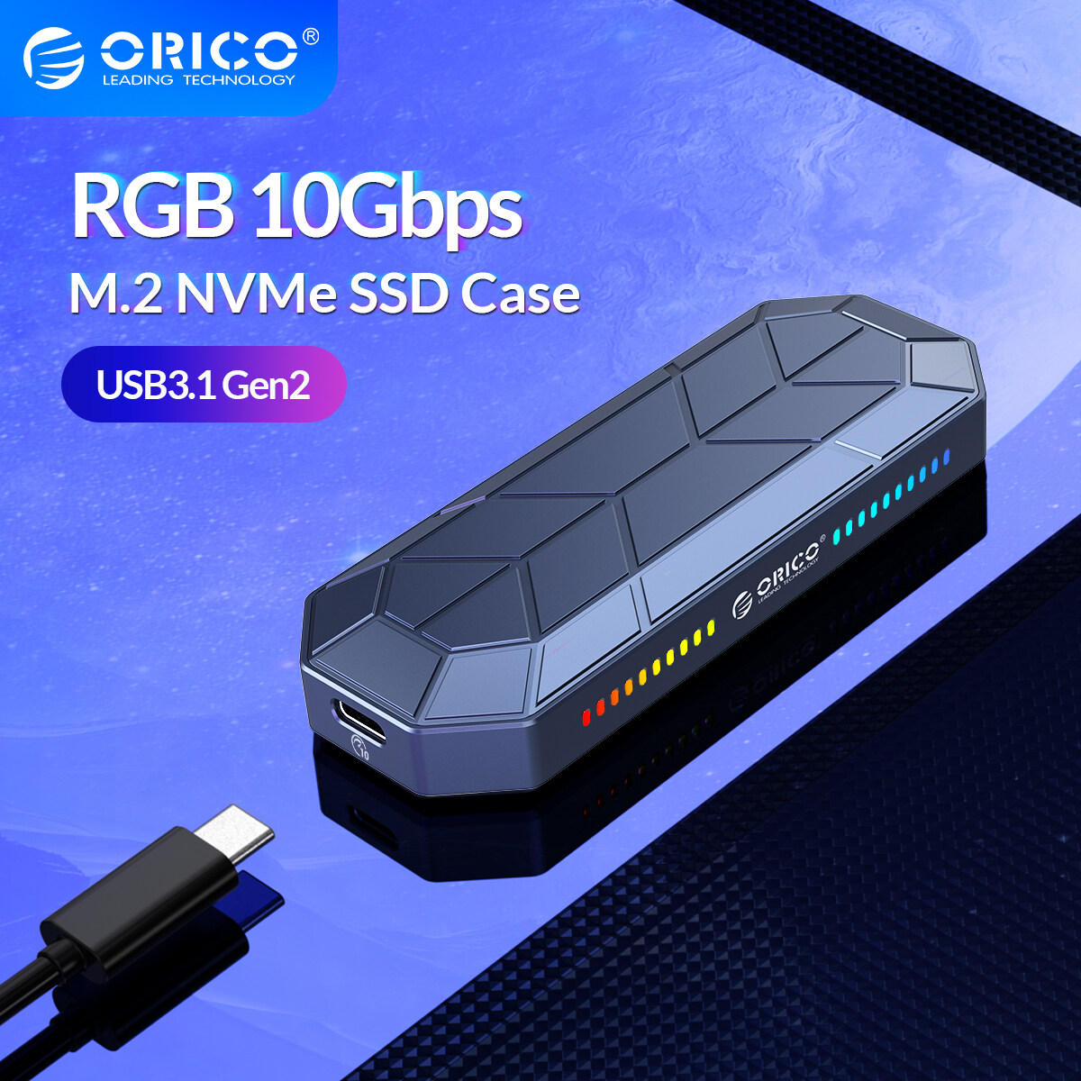 ORICO RGB M2 SSD Case NVME Enclosure M.2 to USB Type C 3.1 Gen2 10Gbps SSD Box Cool Game Style M.2 SSD Case(M2VG01)