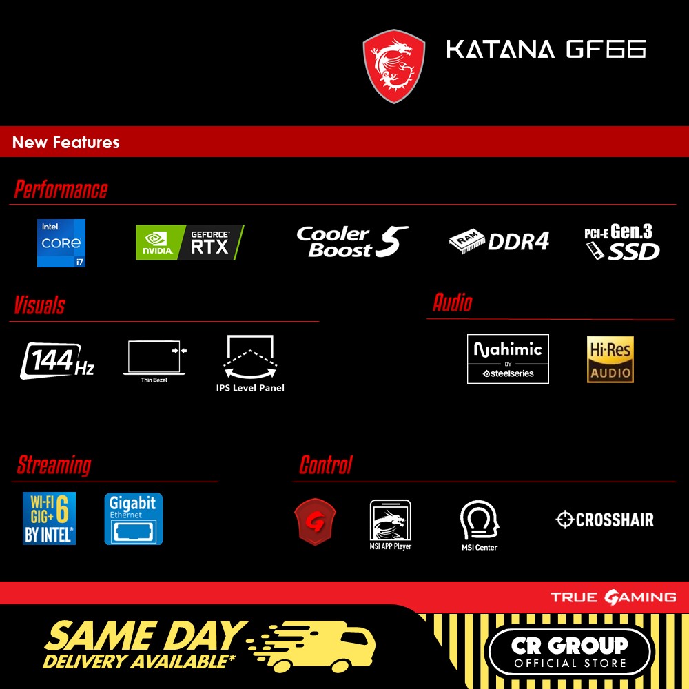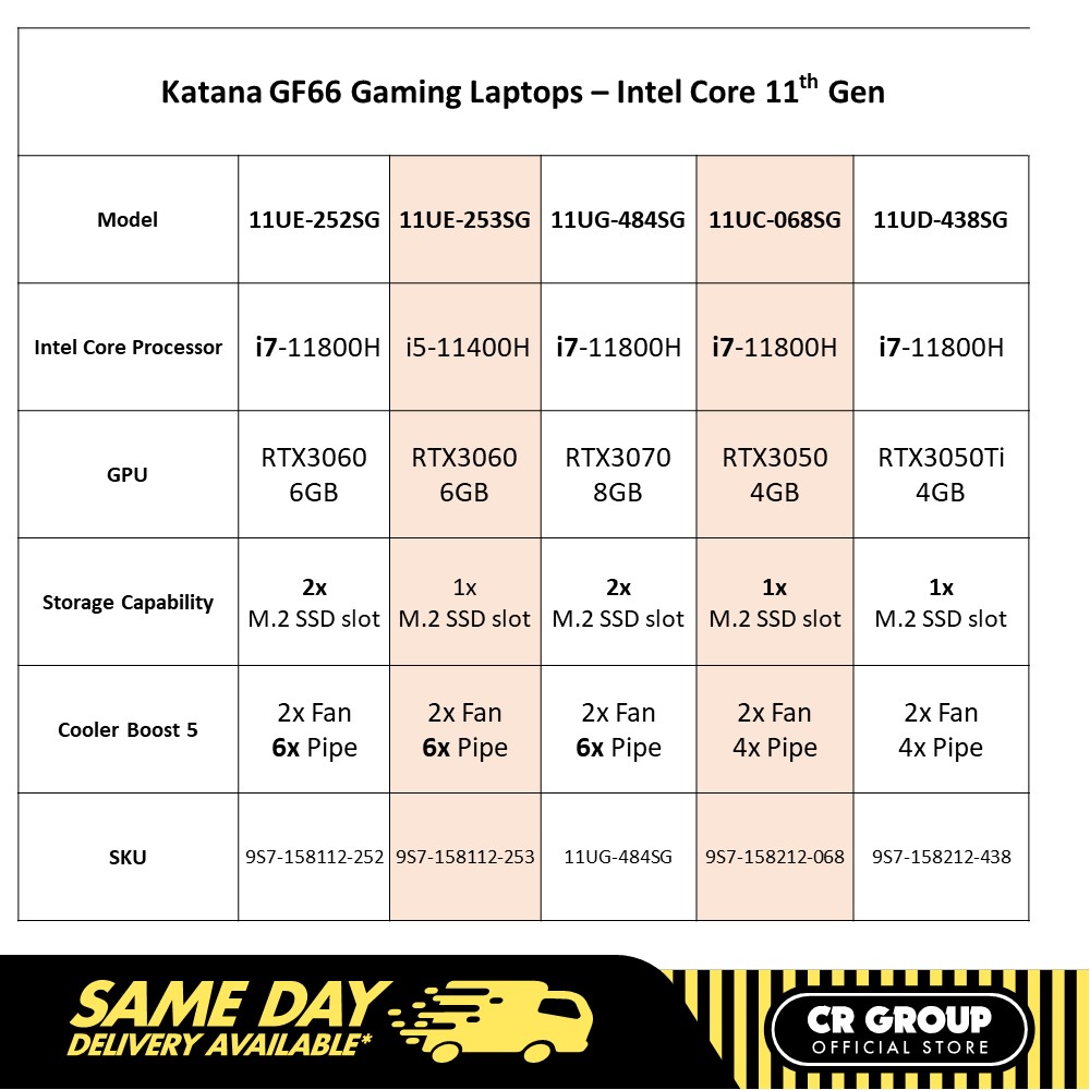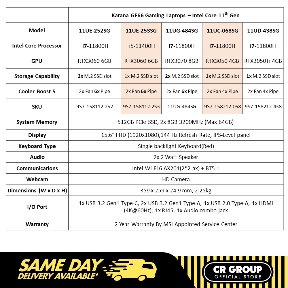 MSI GF66 Gaming Laptop - Intel Core i7-11800H - 144Hz 15.6 Inch FHD - RTX3070 (2 Yr)