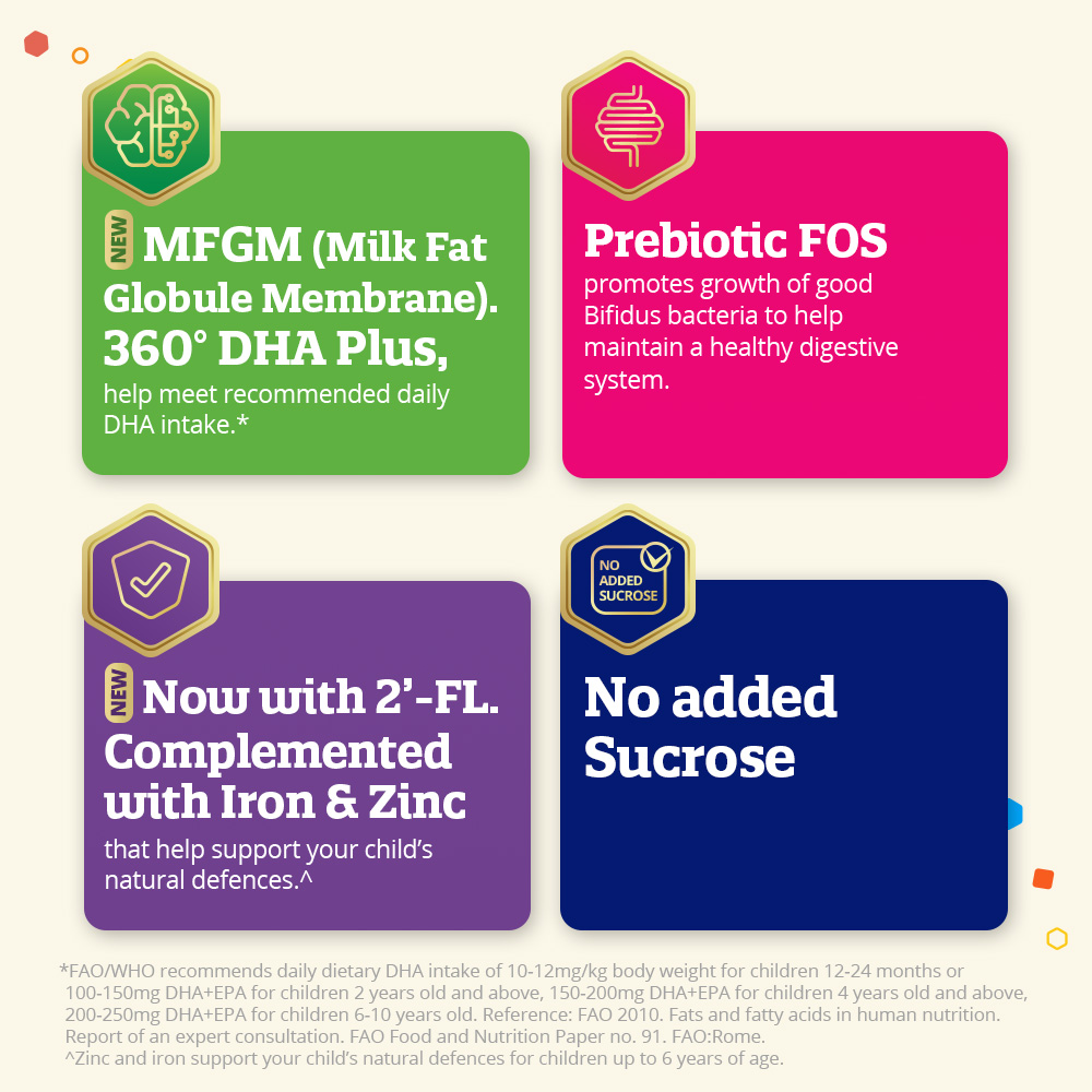 • Formulated with 360’ DHA Plus to help meet recommended daily DHA intake*. DHA is an important building blocks for brain and eye development.