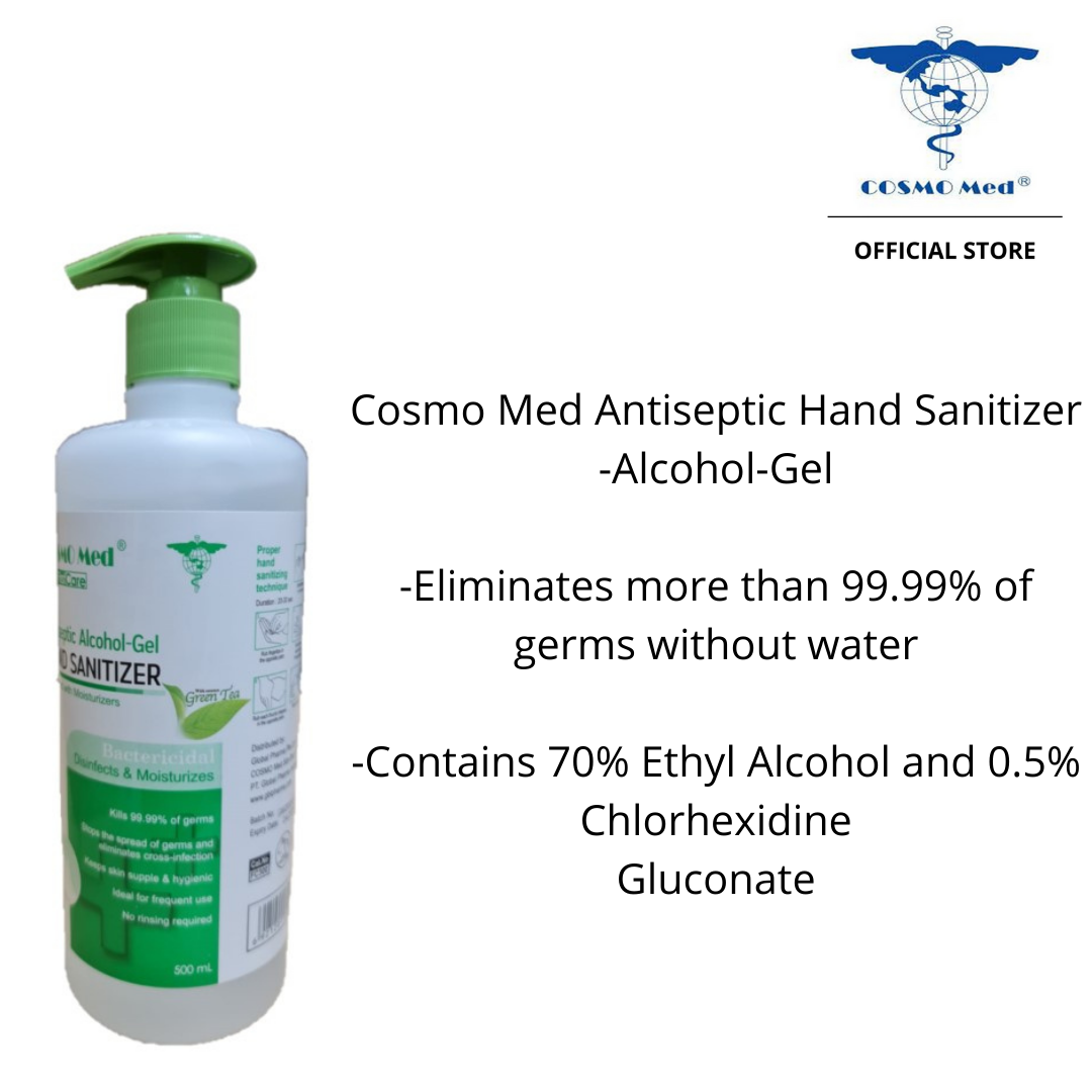 Cosmo Med Hand Sanitizer Gel 70% Alcohol 0.5% Chlorhexidine With Moisturizer 500ml (With Pump)