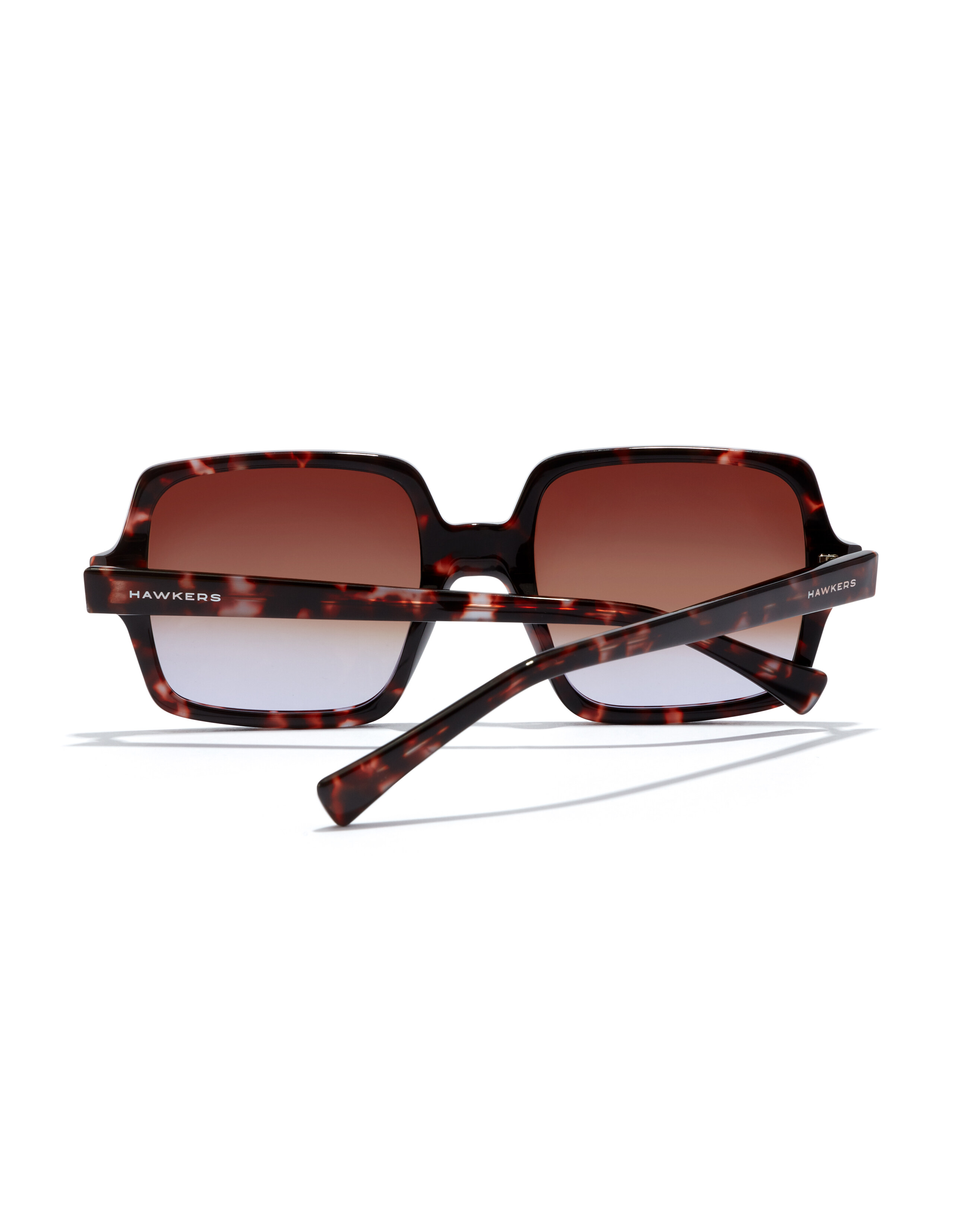 A 70s retro design. Outsized, squared rims and slender temples in dark brown-lilac tortoiseshell acetate with gradient brown-to-lilac lenses. Unisex model*Category 3 lenses*Lenses with UV 400 protection*Highquality cellulose acetate frame for maximum resistance and durability*Wider design of the earpiece for better ergonomics and comfort
