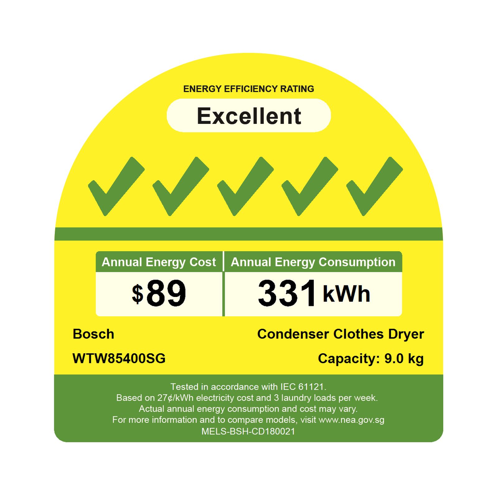 BOSCH WTW85400SG 9KG HEAT PUMP TUMBLE DRYER (5 TICKS)