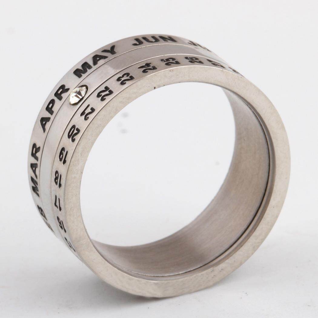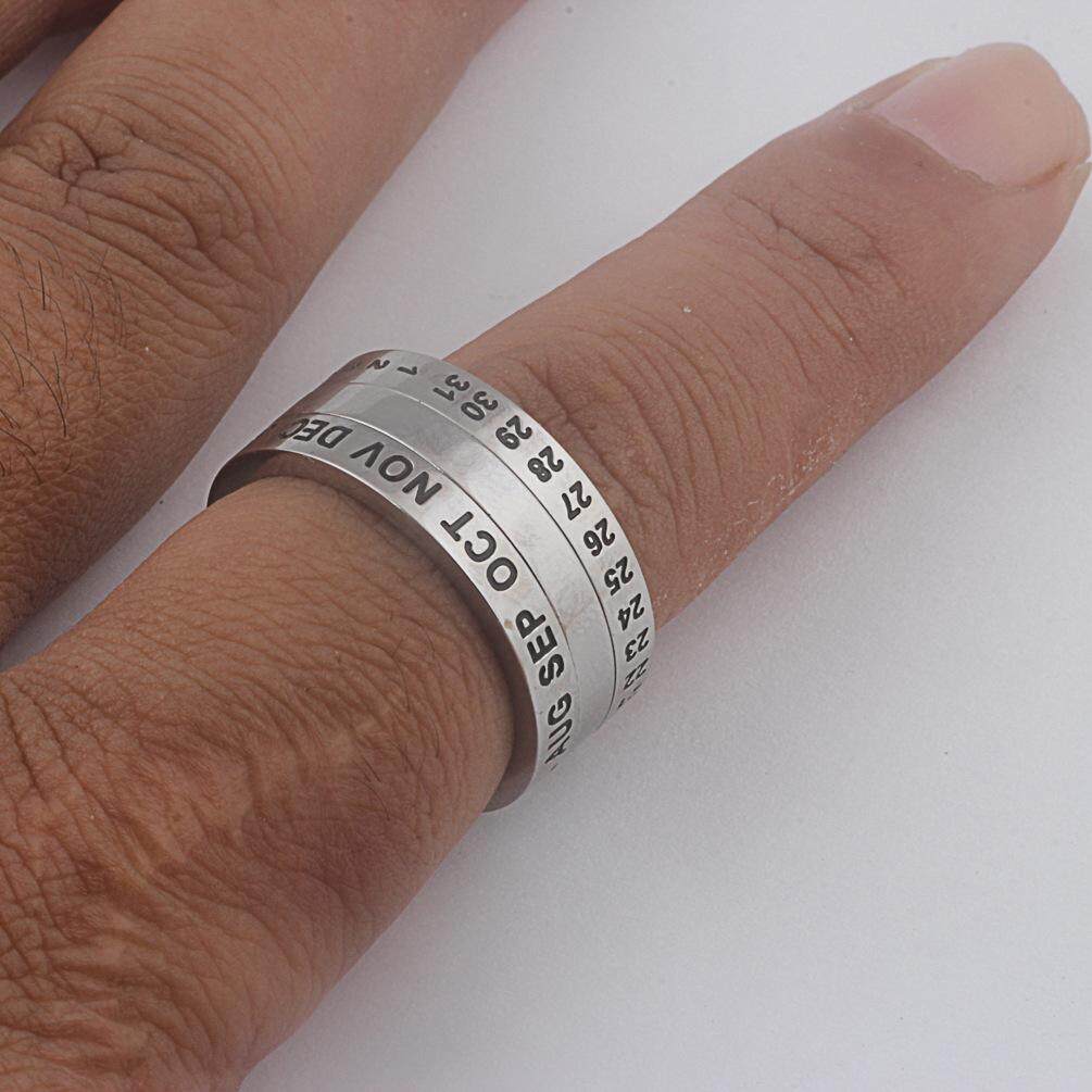 AVECON Rotatable calendar stainless steel ring fashion ring index finger titanium steel for men size 7-12