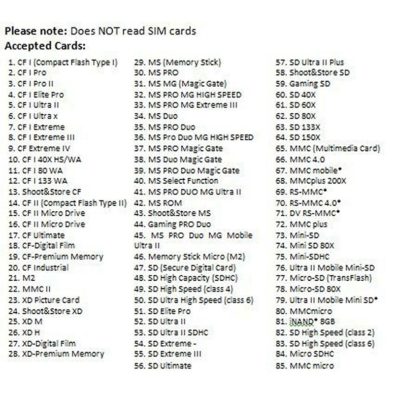 COMPATIBILITY - The multi card reader can transfer your files between a variety of memory cards to your computer fast. This is an affordable solution for quick data transfer. And our reader is compatible with over 150 different memory cards.