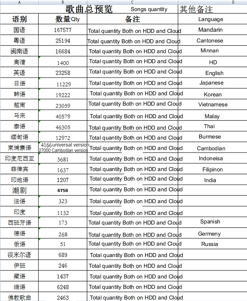 Songs detail:6TB HDD 130K Chinese,English songs preload
