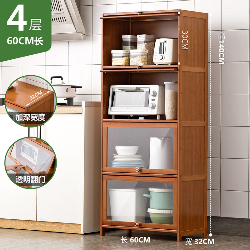 Kitchen Supplies Storage Cabinet Household Complete Floor Multi-Layer Multi-Functional Storage Rack with Door Locker Bookshelf Wood