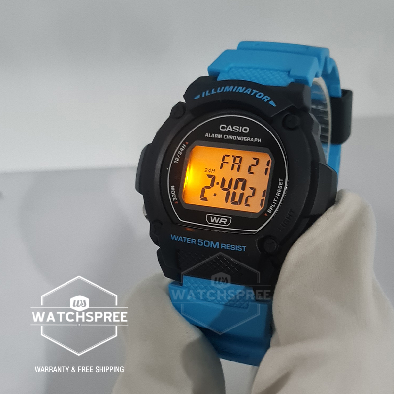 [Watchspree] Casio Digital Blue Resin Band Watch W219H-2A2 W-219H-2A2 [Kids]