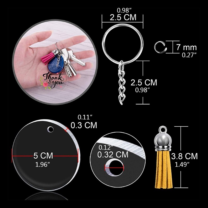 48 Pcs Round Clear Discs Circles Tassel Acrylic Keychain Blanks with Key Rings Transparent Acrylic Ornaments Blanks Set