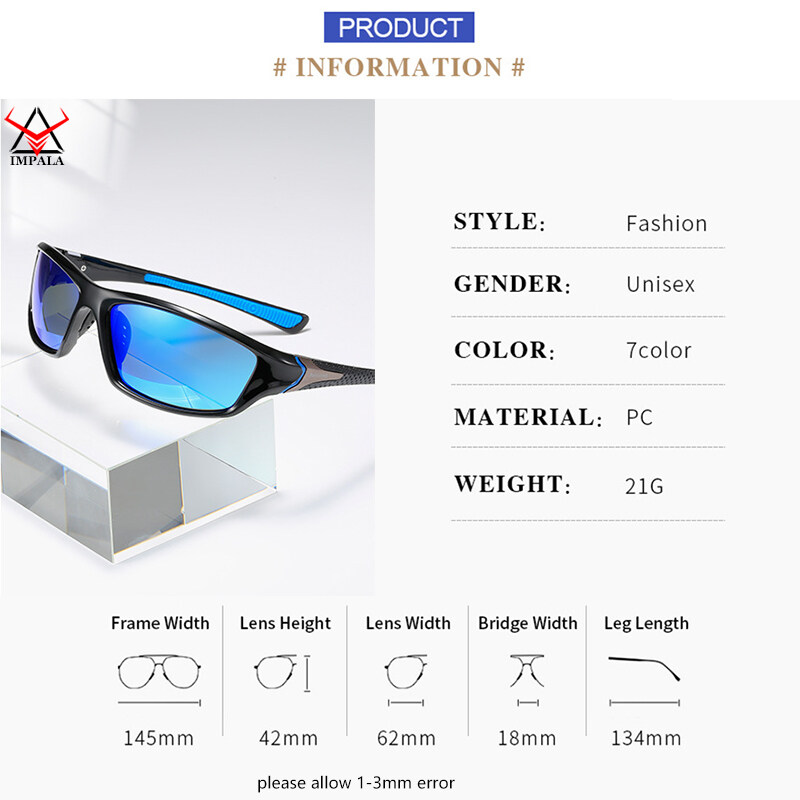 IMPALA PG1608L Fashion Polarized Sunglasses for Men and Women Sports Eyewear Cool Style Polarized Cycling Sunglasses Aviator Driving Fishing Sun Glasses with Box