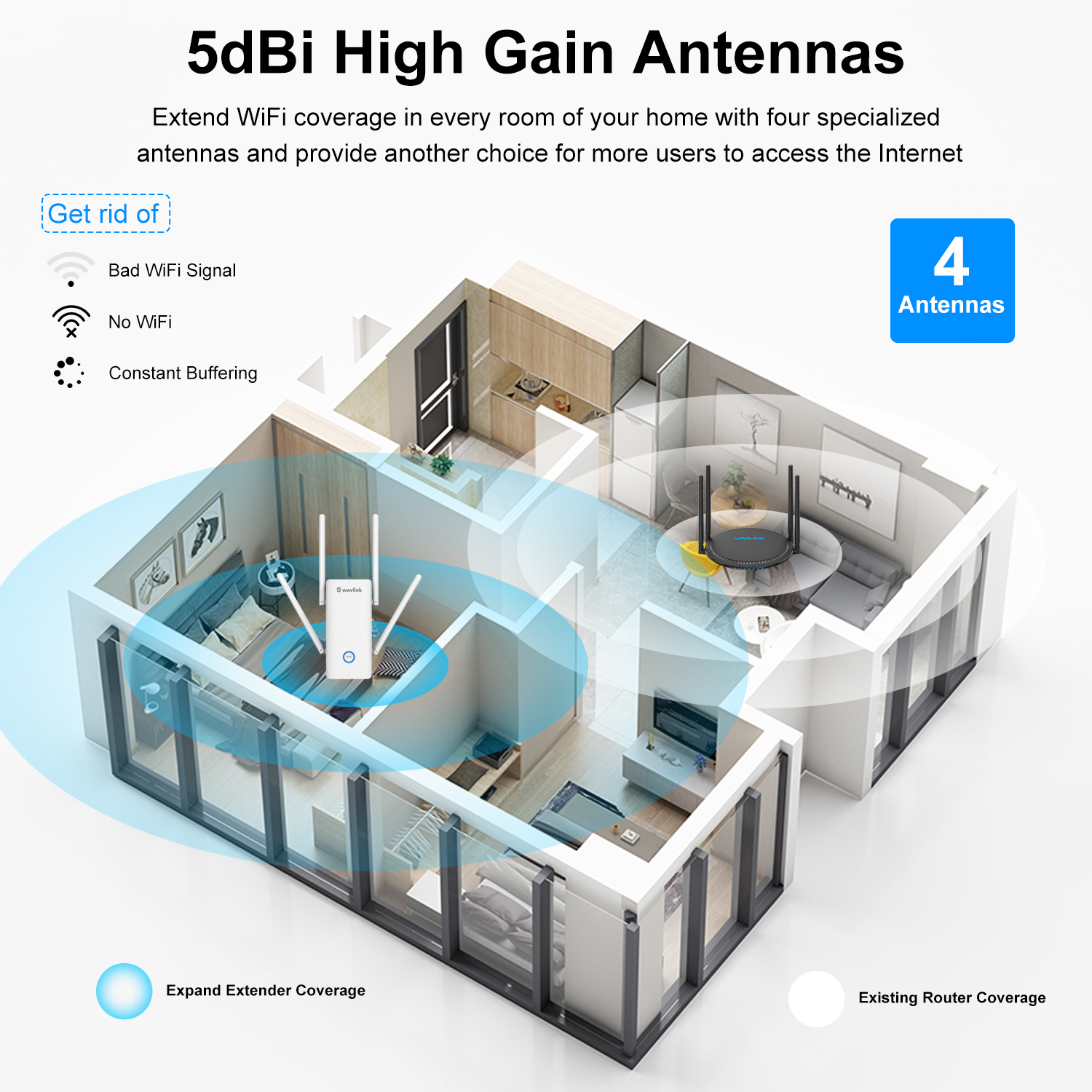Quad-Antenna Design: Four high-powered antennas minimize coverage of dead spots and create strong, reliable Wi-Fi connections with devices in the farthest corners.