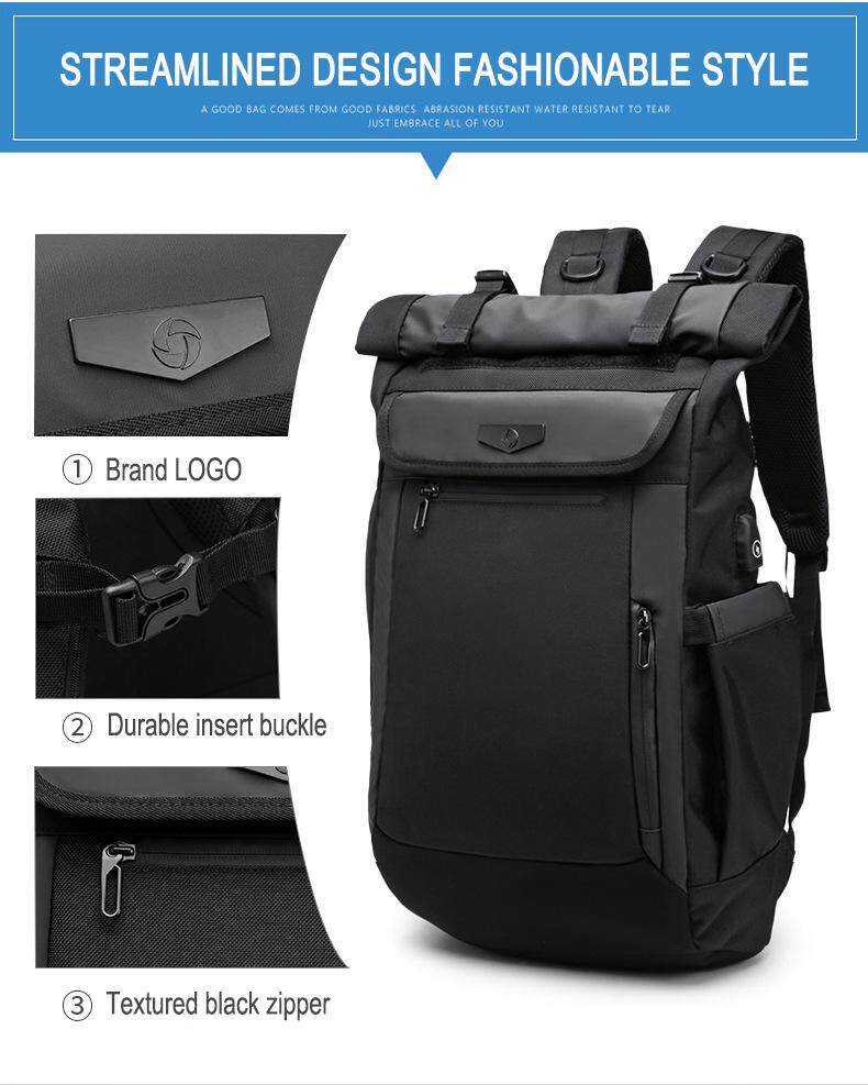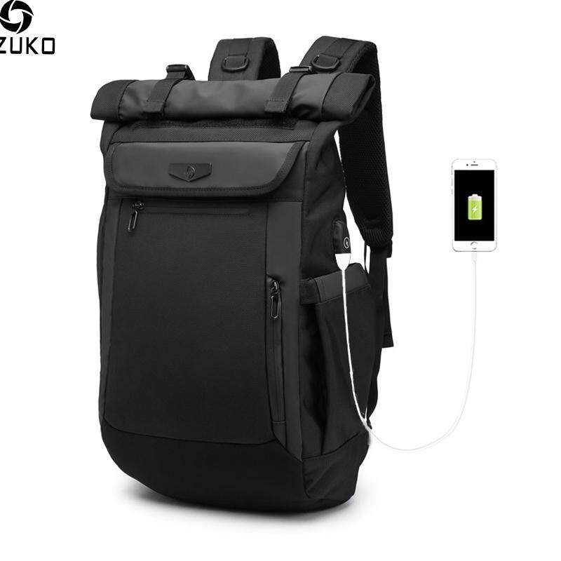 OZUKO New Men Backpack Multifunction USB Charging Laptop Bag Fashion Schoolbag