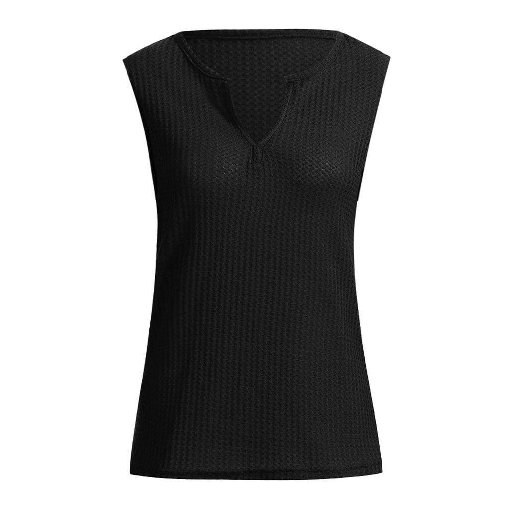 Dunnshop Summer Blouse Shirt Womens Fashion V Neck Shirts Sleeveless Solid Waffle Knit Loose Fitting Tee Tops