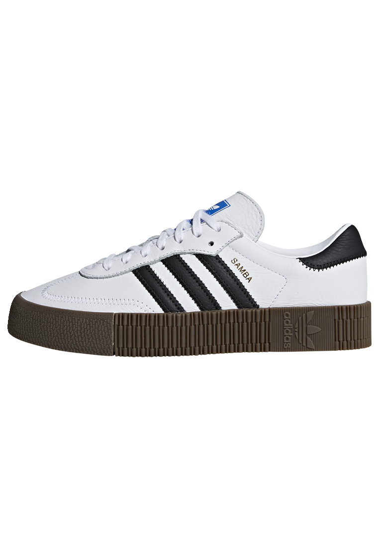 These trainers rework the Samba's classic football silhouette as a stylish platform shoe. The leather upper is stacked on top of a raised gum rubber outsole to add height.