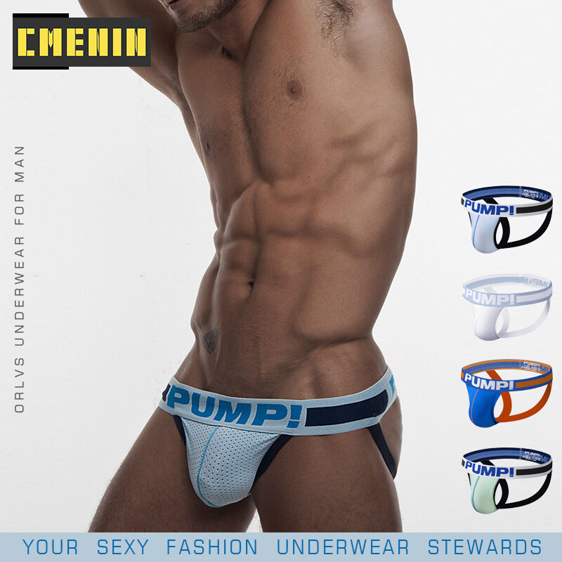PUMP 4Pcs Patchwork Cotton Sexy Men Underwear Thong Mens Jockstrap Popular Thongs Jockstrap Men And G strings Lingeries CMENIN Soft Splice Innerwear H96