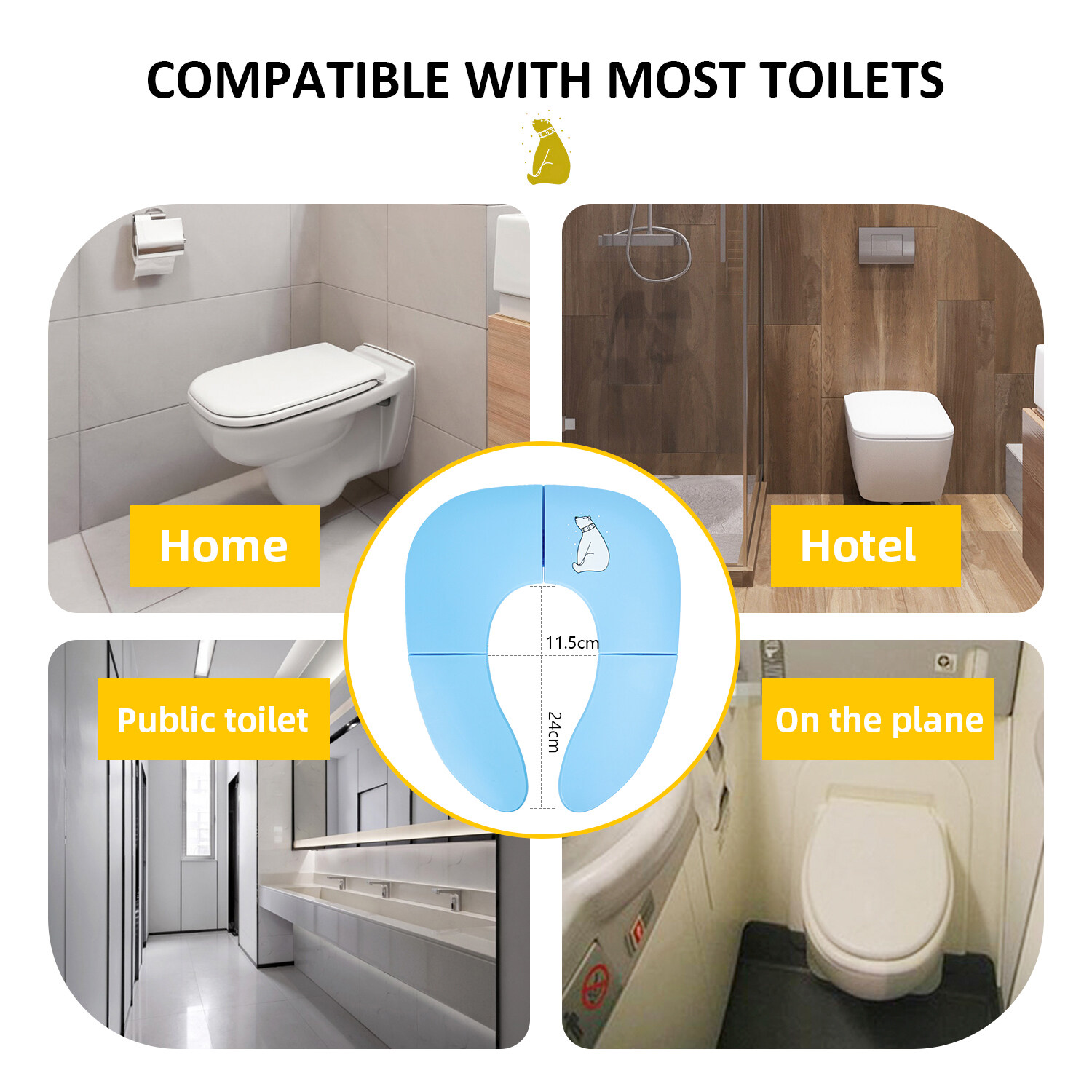 Orzbow Folding Travel Toilet Seat fits most standard and public toilets securely.