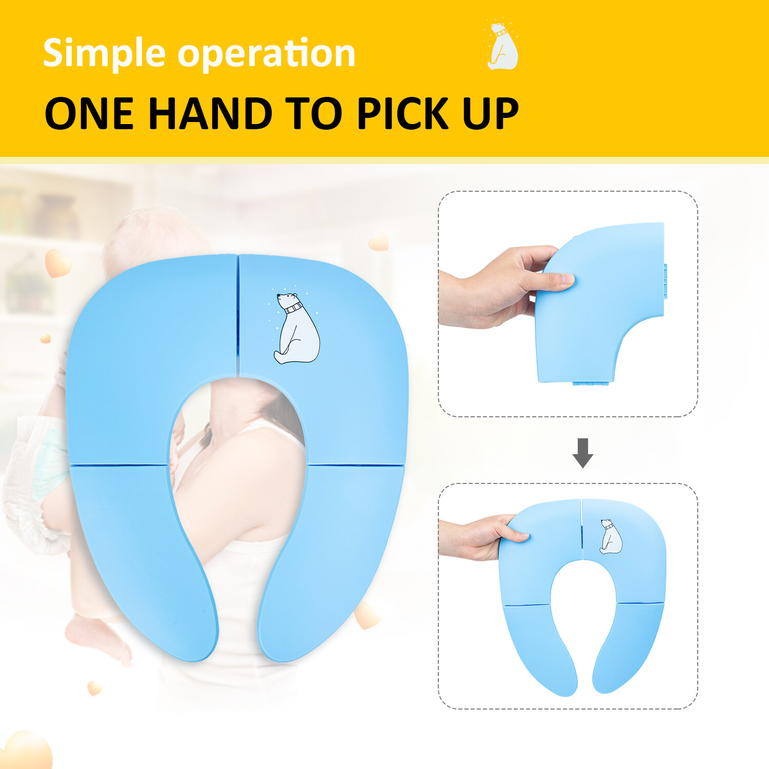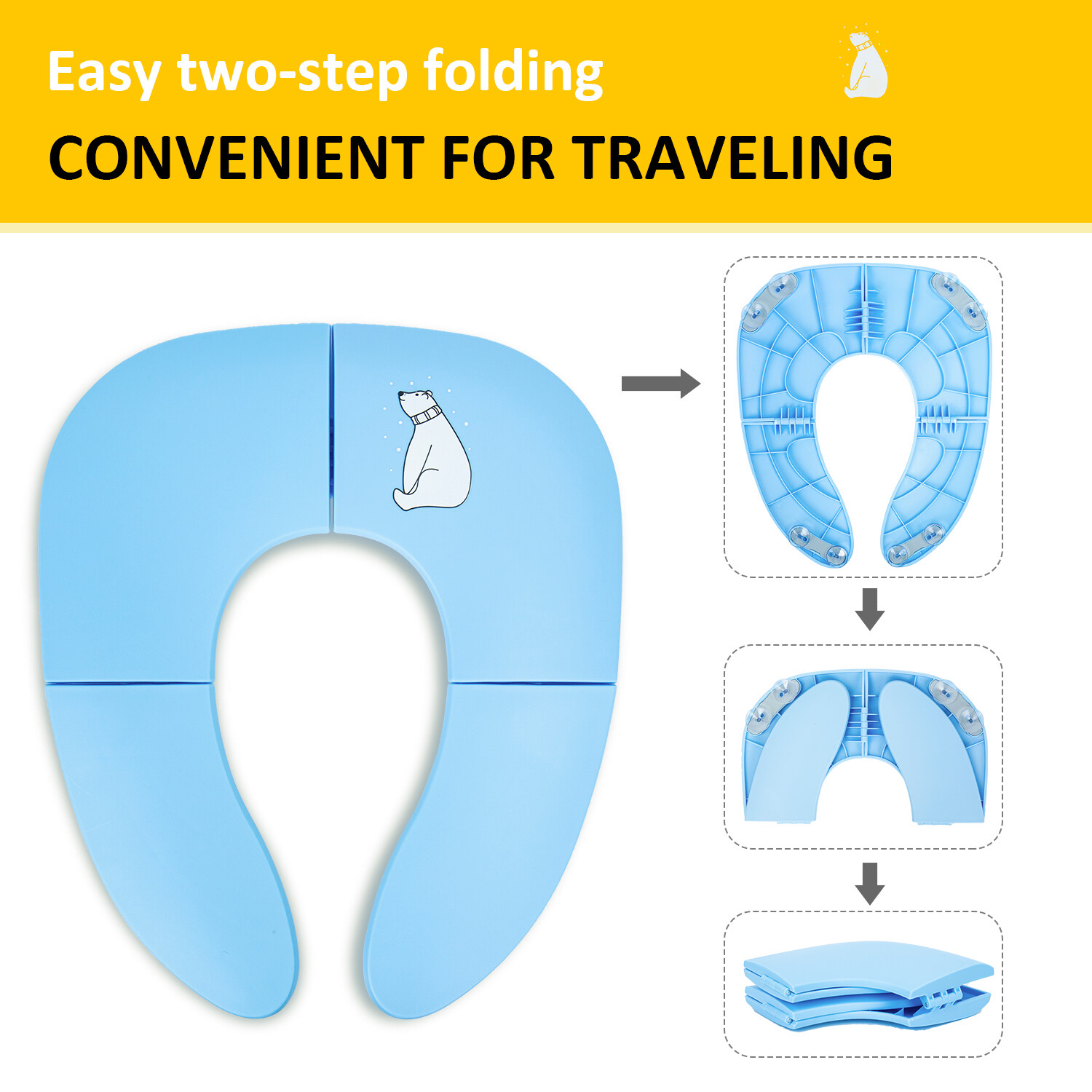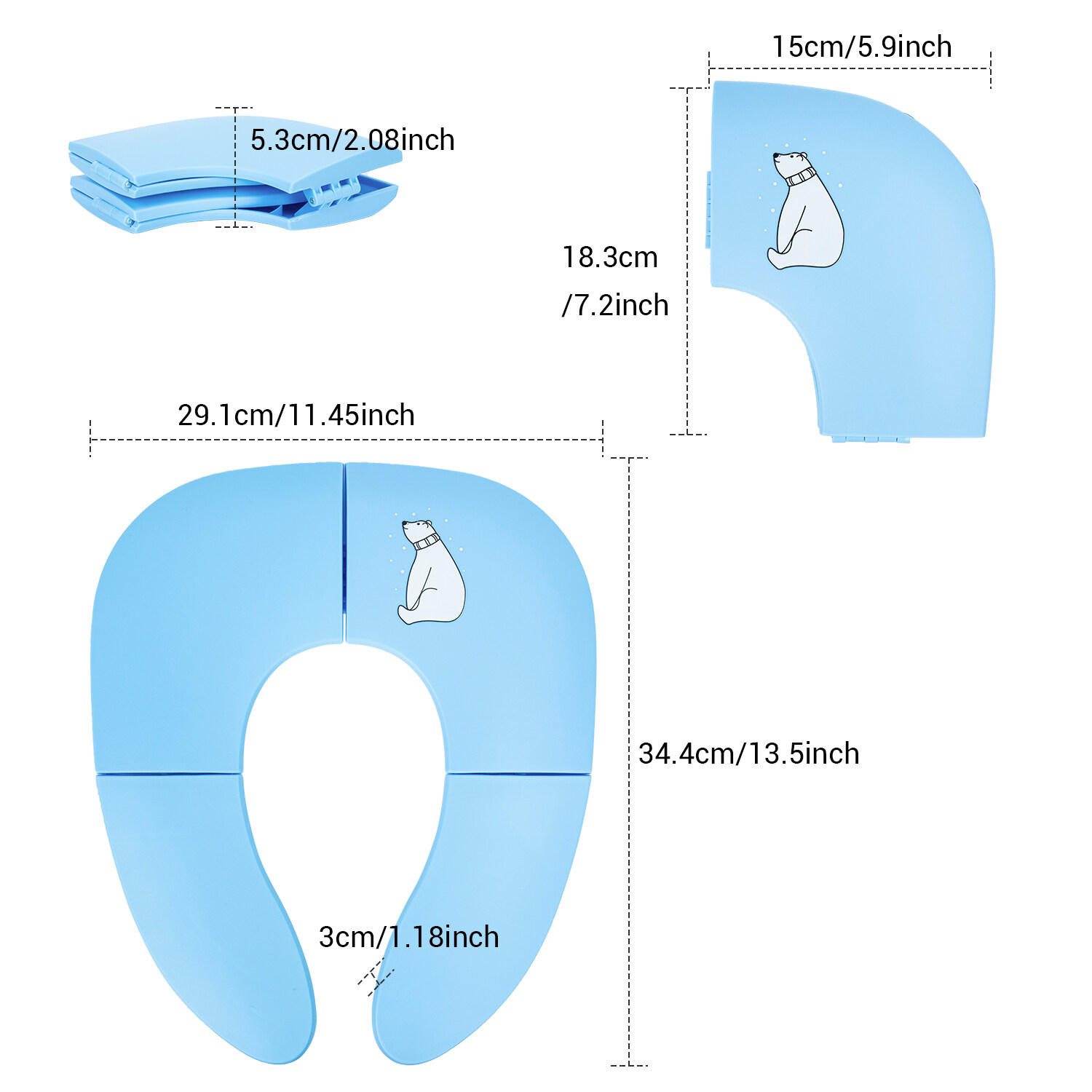 Freely switch Foldable To Unfoldable Design - Toilet Seat cover Folds up pretty small size of 7.2''L x 5.9''W x 2.8''H to bring to public restrooms easily and perfect for your children's away-from-home bathroom's needs and compact for "on the go" and traveling;