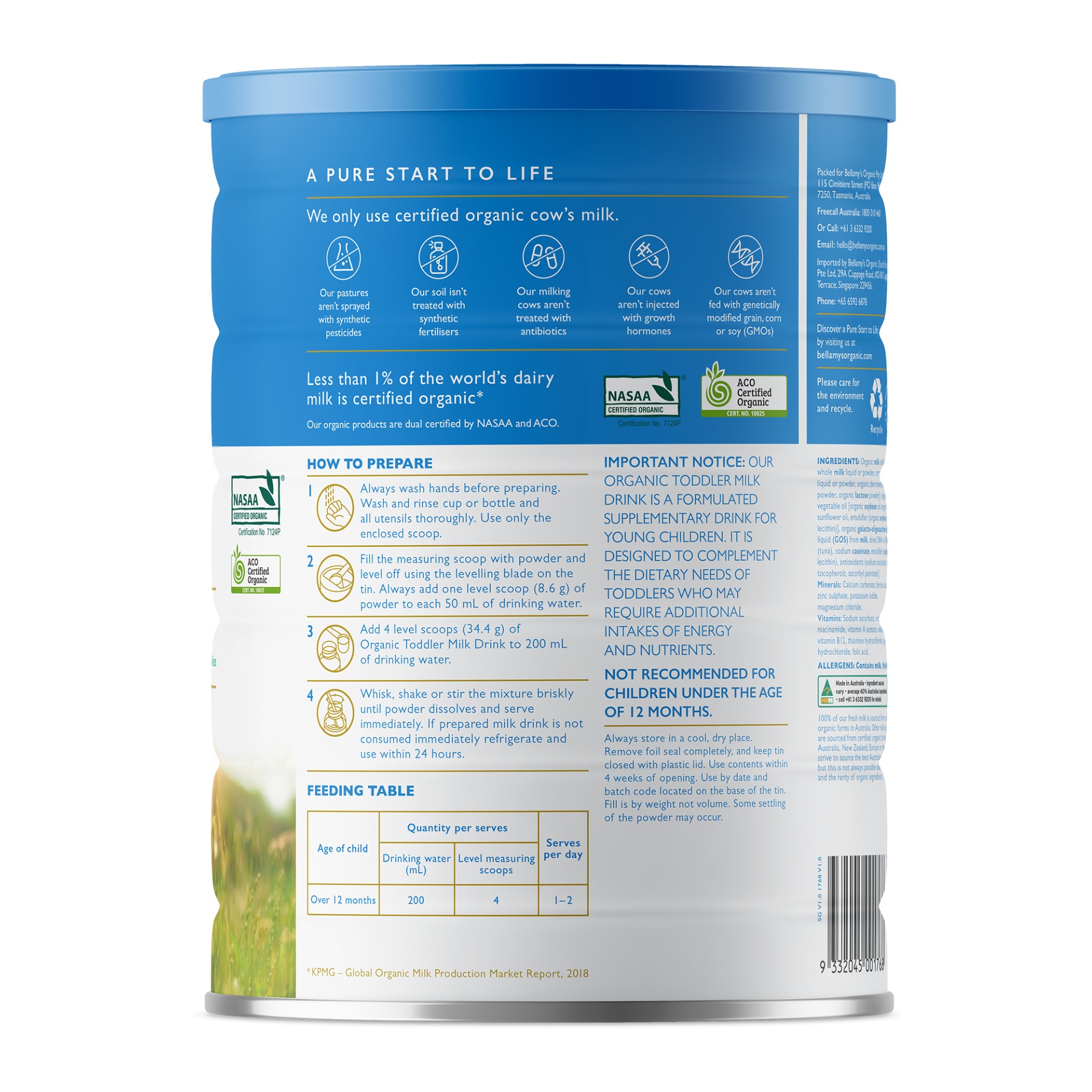 Bellamy's Organic Step 3 Toddler Milk Drink (12+ months) 900g x 6